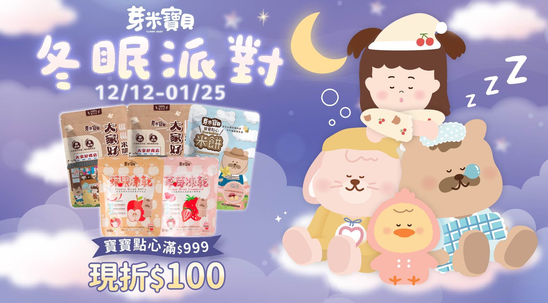 • 活動期間:12/12~01/25• 活動內容:【常溫點心】滿 $999 現折 $100,再享免運!• 專區商品:Q肉鬆系列、R米餅系列、S凍乾系列、T點心系列• 此活動僅適用「芽米寶貝官網」• 此活動無法與其他優惠合併使用(如150元試吃金、全館或已折扣之優惠商品)• 依照「通訊交易解除權合理例外事情適用準則」第二條規定,食品非為試用品,不適用七天鑑賞期退換貨,參與本優惠之同時,即視同接受此優惠及注意事項,不得要求退款• 本公司保有隨時修改及終止或解釋本活動之最終權利